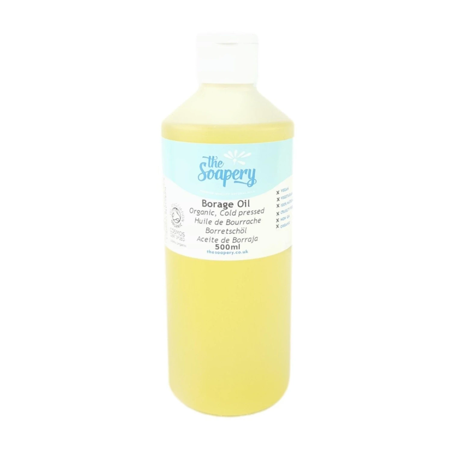 Our borage oil, (also known as starflower oil) is cold pressed from the seed of organic borage plants. Borage seed oil is yellow in colour and has a neutral scent.