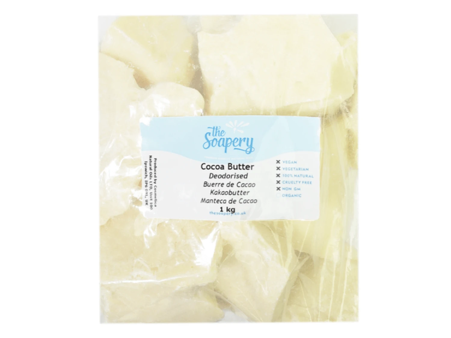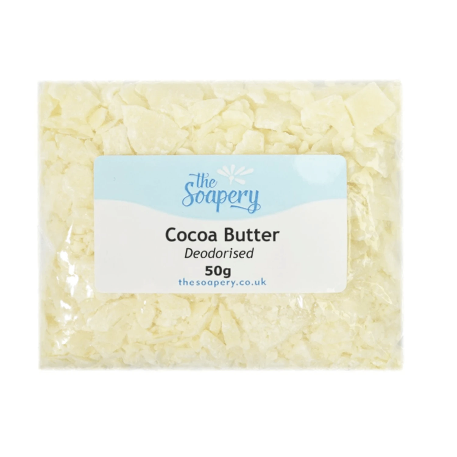 Our cocoa butter is refined, white to cream in colour, and has neutral scent. It won’t influence the colour or scent of the finished product. It is intended for cosmetic use only.
