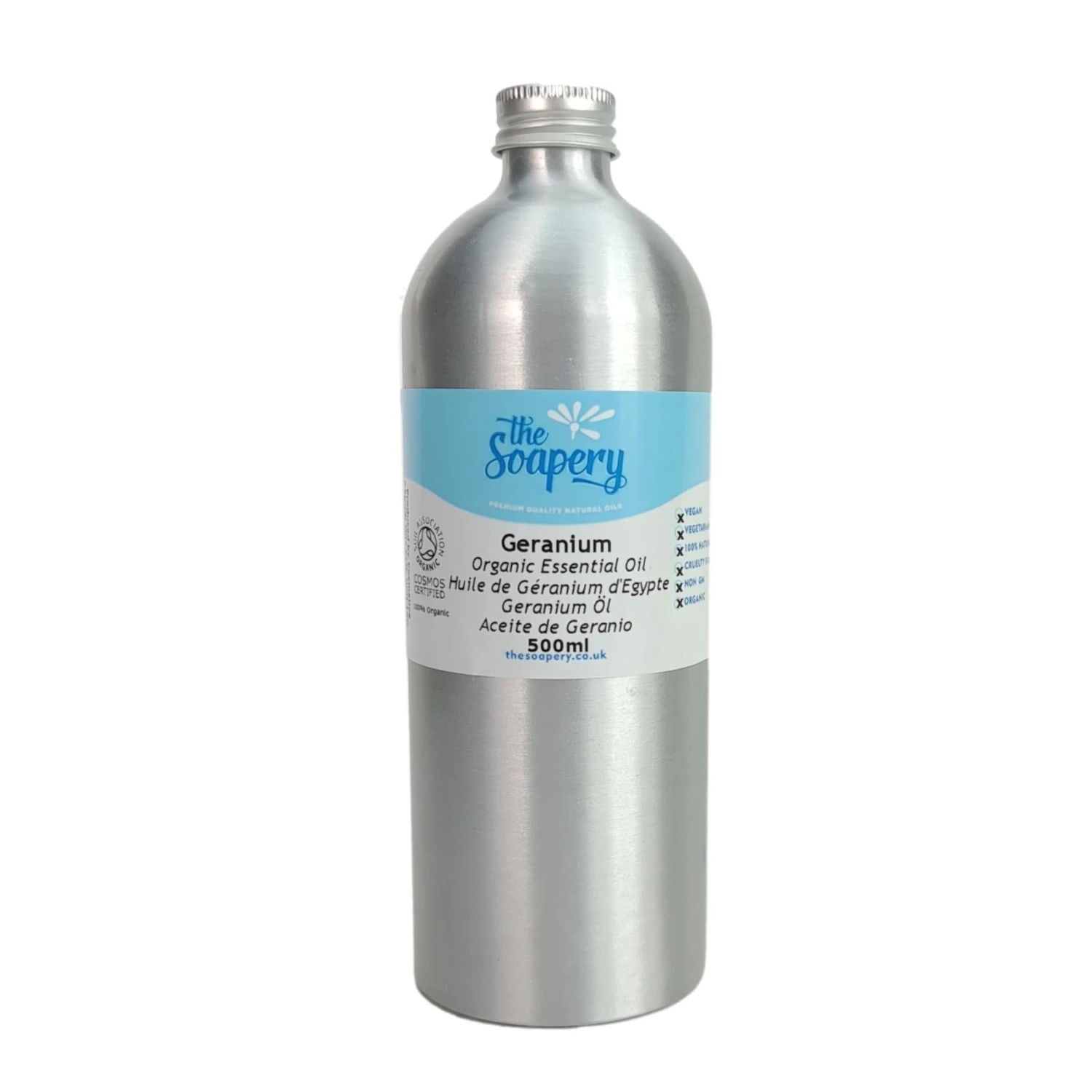 Organic geranium essential oil is popular in the fragrance and cosmetic industry and is used in perfumes, soaps, herbal medicine and aromatherapy.