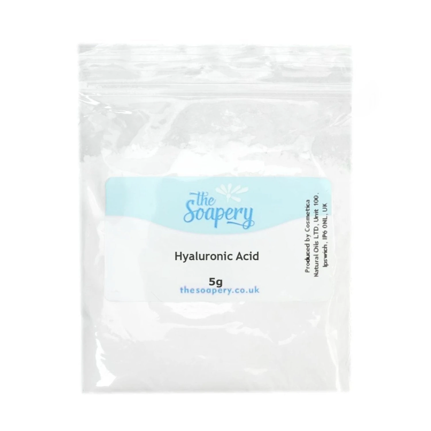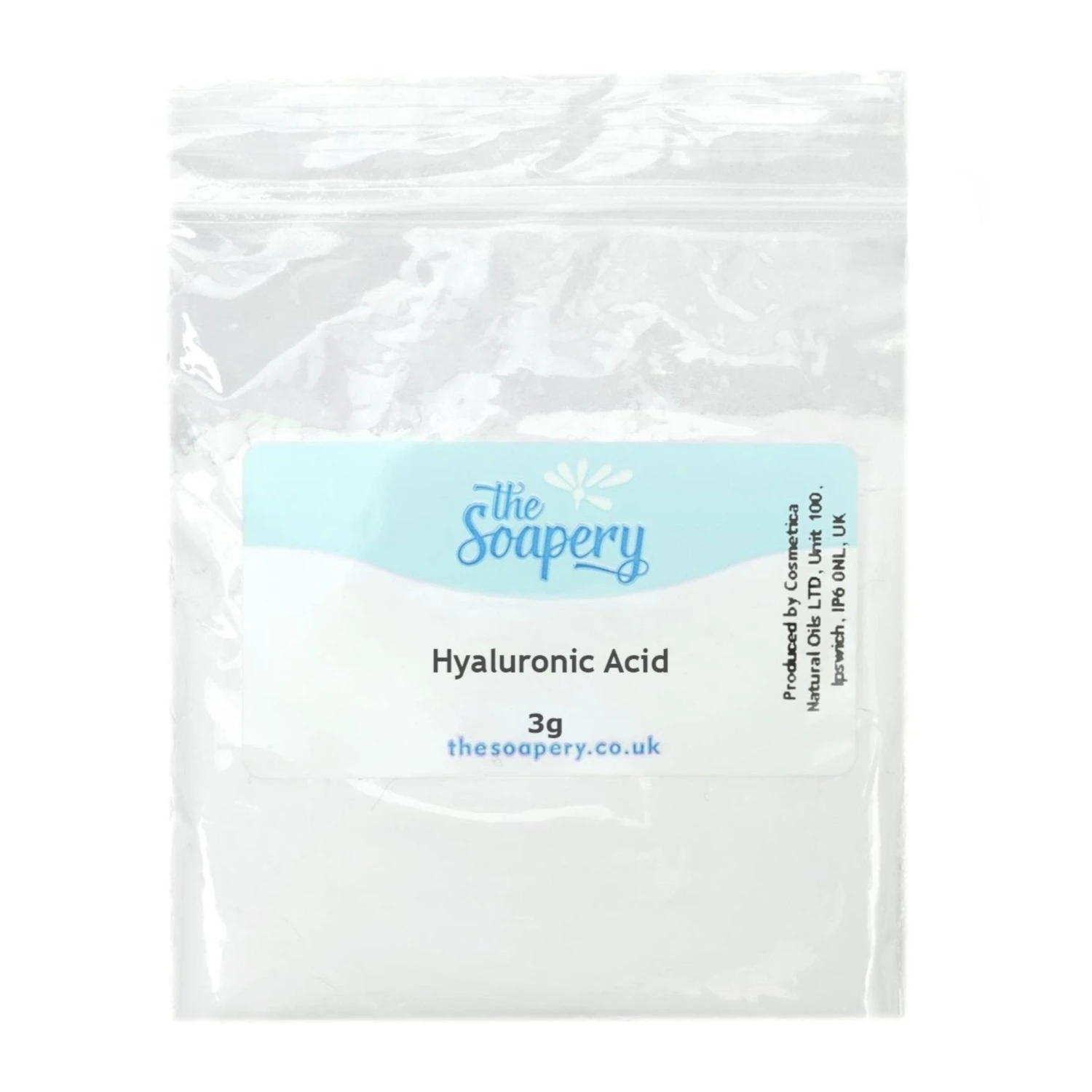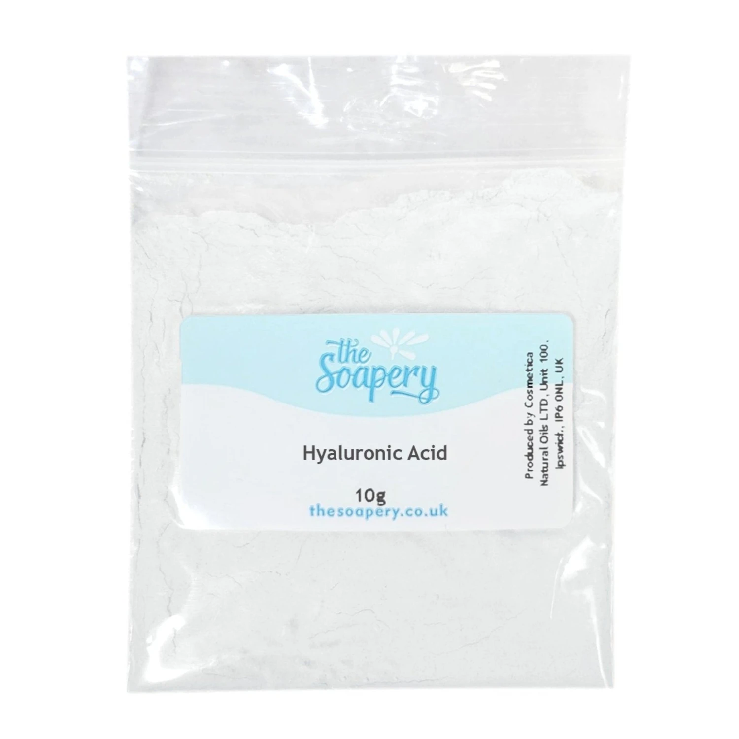 Hyaluronic acid is naturally found in the body, particularly around the eyes and joints. Our hyaluronic acid is made from bacterial fermentation. It is a fine white powder, often used for its humectant properties which draws in moisture and hydration to all skin types.