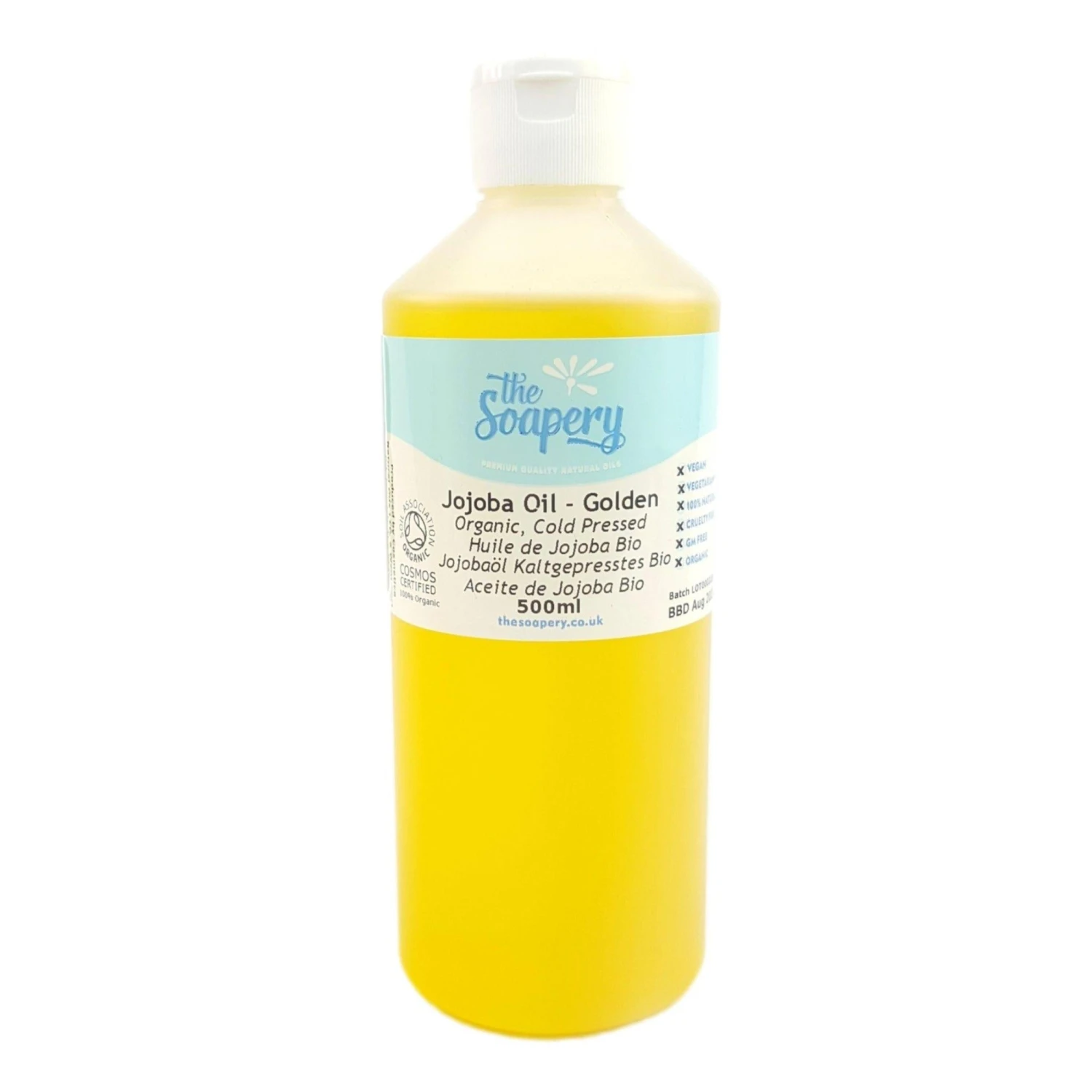 Technically a liquid wax, the oil has a thin consistency and as with all our organic oils, our organic golden jojoba oil is certified by the Soil Association. We are inspected annually to make sure we meet their strict quality standards.