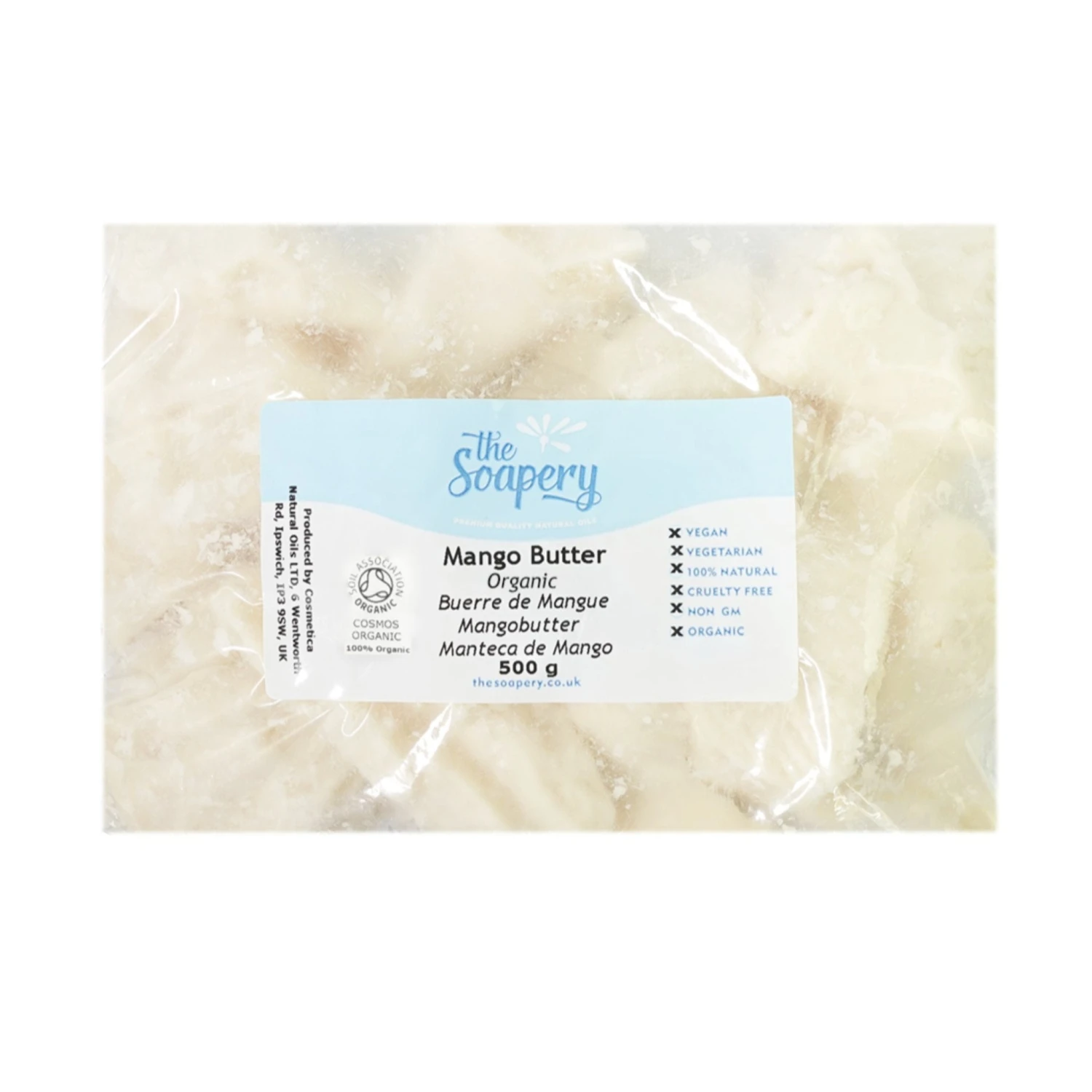 Organic mango butter contains vitamin A, vitamin E, and vitamin C. It nourishes dry skin due to its natural moisturising properties.